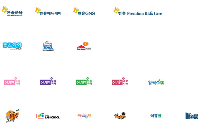 한솔교육 glass 일반 5 19029 2008.02.17 21:50 -0001.11.30 00:00 eduHansol.ai (0byte) + 281 [한솔교육 CI & BI] 한솔교육, 한솔에듀케어, 한솔GNS, 한솔 Premium Kid's Care 툴스아이(TOOLS-i), 브레인스쿨(Brain School), 브라이튼(Brighton) 신기한 아기나라, 신기한 영어나라, 신기한 한글나라, 신기한 수학나라, 활짝e한글나라 주니어 플라톤, 주니어 랩스쿨(Junior Lab School), 재미나라, 퍼니또(Funitto), 에듀맘, 북스북스(Books Books)